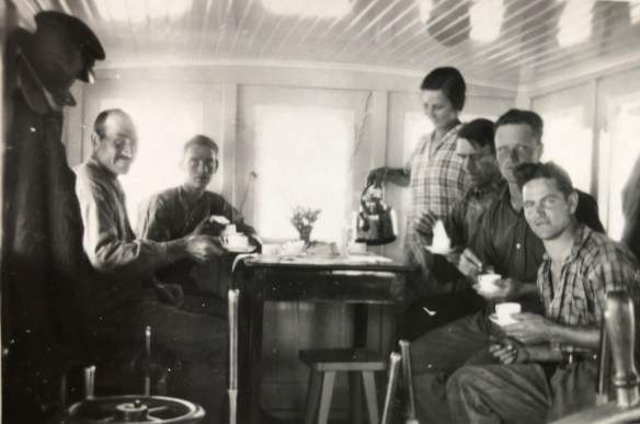 På ovanstående bilder medför GÖRAN ved på däck. runt 1960 fick pannan oljeeldning och däcket fick oljetankar.