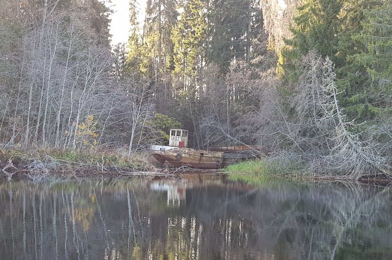 – Vi hade lastat pråmen i Mora på fredagen och skulle gå ner till Leksand på lördags morgon. När vi kommit en bit söderut drabbades vi av tjocka så in i vassen, det var alldeles tätt neröver. Då skulle vi gå på kompassen ner till Leksand. Man tog ut kompassriktningen och räkna ut att vi skulle gå mellan Skären (Vattholmsskären)och Stumsnäs udd’.Efter ett bra tag började man fundera på att vi gått så länge att vi borde va vid Bältarhar. (ett grund strax norr om Rossaviken). Några gamla landrensare var också med ombord och – jodå! dom trodde också att vi var vid Bältarhar! Så vi svängde neråt och plötslig var det inget vatten under båten! – Gissa var vi var med den där vedpråmen? – I Olsnäsviken! Jag var i maskinen då och minns att jag blev förbannad! Vi skulle ju vara hemma vi till middagen, inte skulle vi hinna hem nu heller!