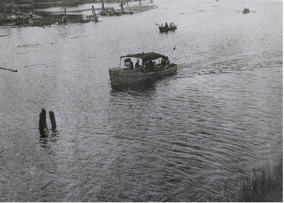 Det var enastående båtar med tändkulemotor. Vi hade halva lördagen och hela natten på oss att få ren den två kilometer långa älven från timmer.Vi körde upp båten på en stor stock och fick på det viset ett brett schaktblad, därefter körde vi i bredd och kunde preja undan mycket timmer ut iVästerdalälven. Efter det drog vi bakläns för att finrensa älven.