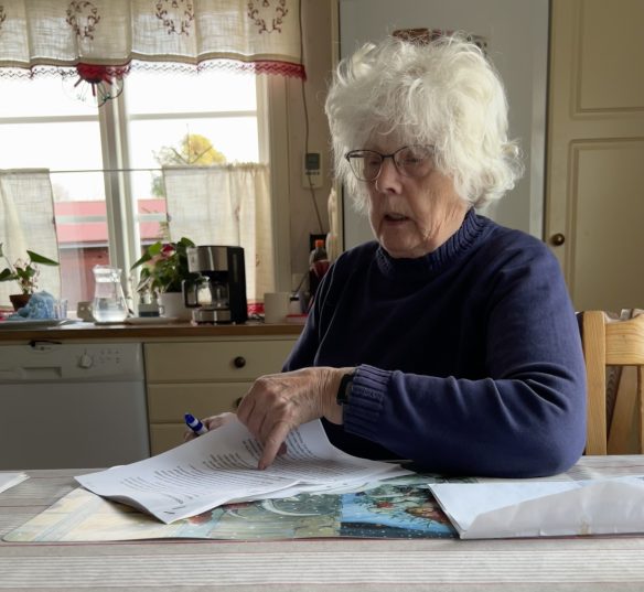 Mitt emot kajen ligger en flotbåt förtöjd. Dåtiden mitt i nutiden. Synen av båten berör mig, angår mig. När vi sen kommer till Varvet i Övermo blir plötsligt dåtiden min nutid.